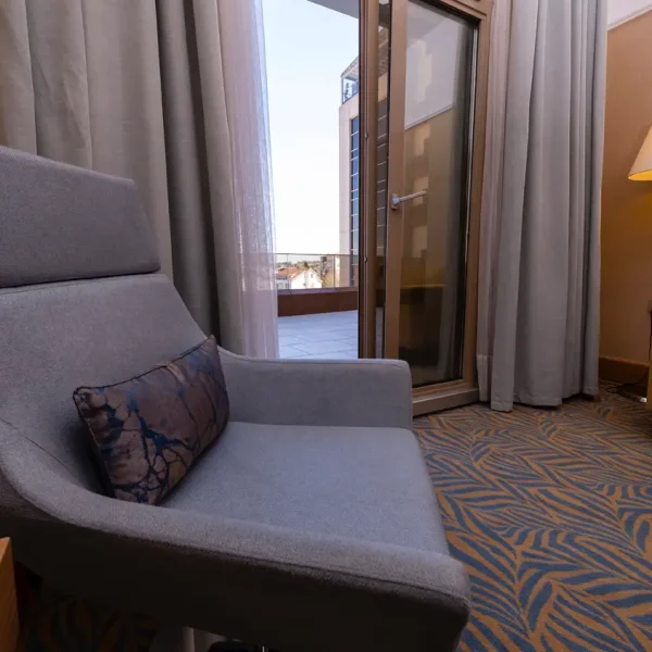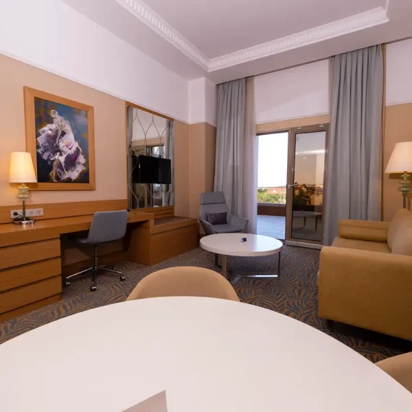 Teras Suit adlı özel odamız, minimum 1 kişi ve maksimum 2 kişi kapasiteli olarak sunulmaktadır. 50 metrekare genişliğindeki bu oda, içerisinde bir adet çift kişilik yataklı ebeveyn yatak odası, ergonomik koltuk takımı ve bir adet toplantı masasından oluşan oturma odası barındırmaktadır. Ayrıca, odalar arasında bağlantı kapısı bulunarak konforlu bir konaklama deneyimi sunmaktadır.